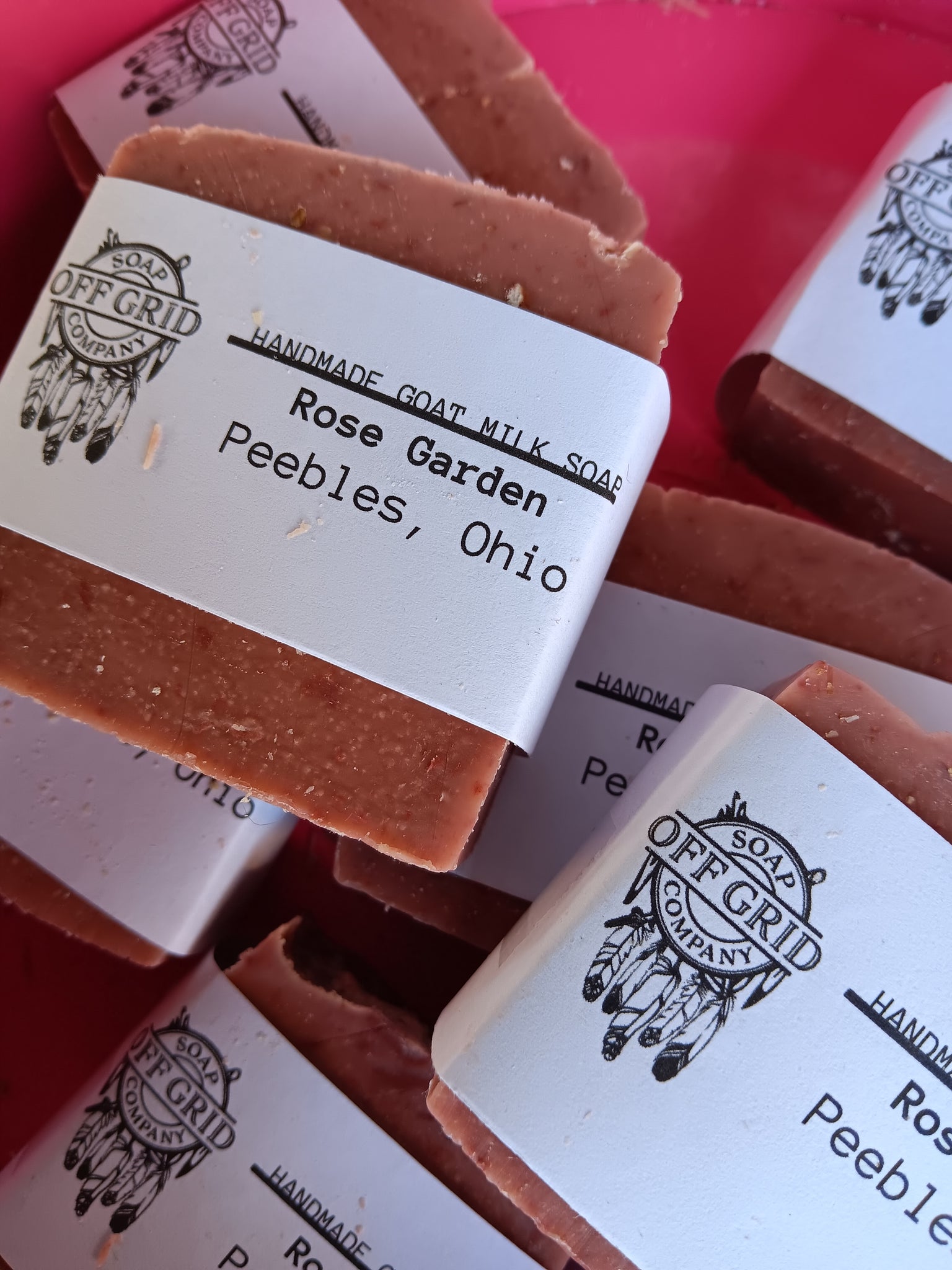 Ingredients: Coconut oil, Olive oil, Palm Oil, Goat Milk, Ground Oats, Moroccan Red Clay, Lye, Fragrance oil